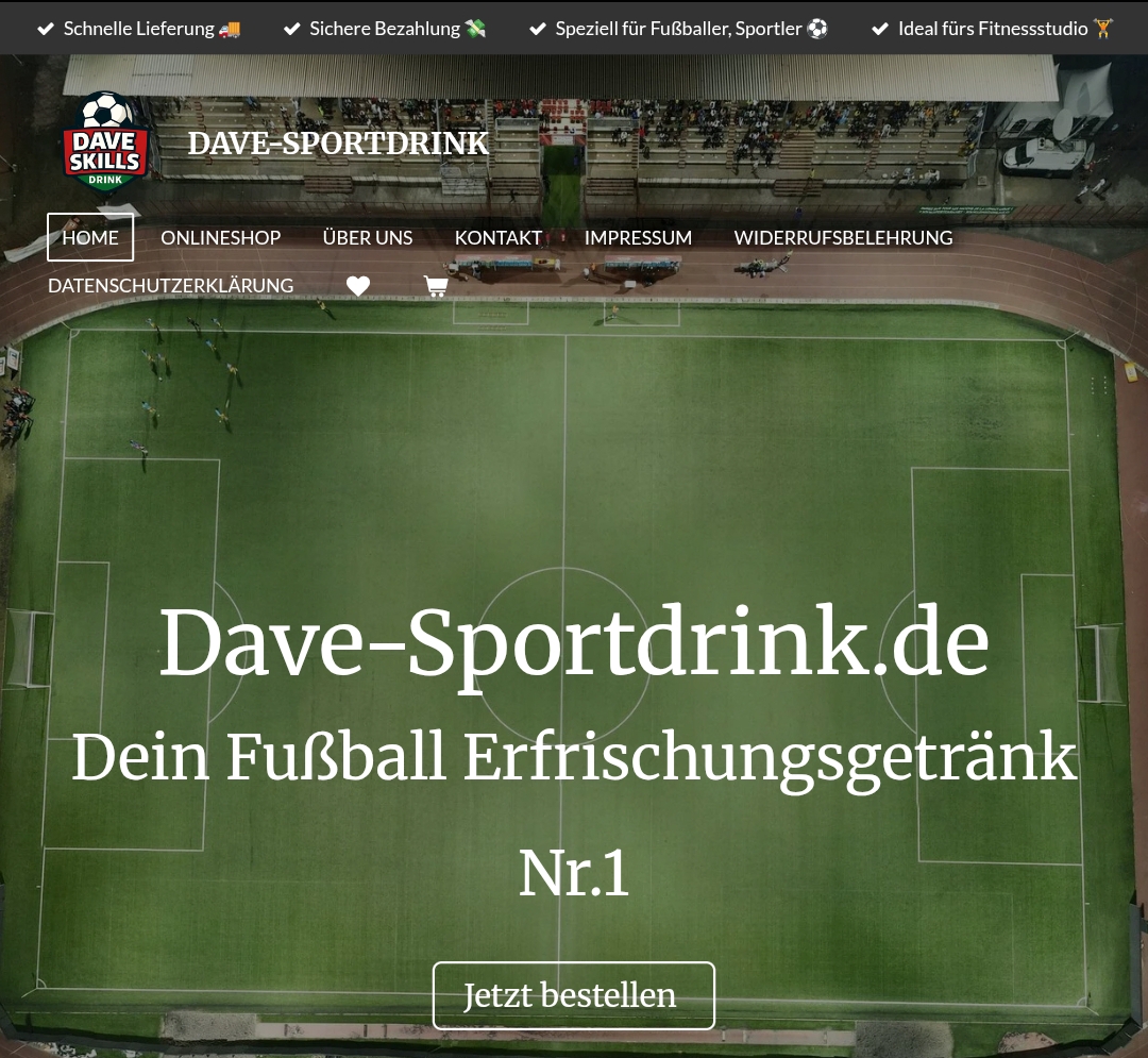 Für Dave-Sportdrink haben wir einen modernen, verkaufsoptimierten Onlineshop entwickelt, der speziell auf die Zielgruppe Fußball & Fitness ausgerichtet ist.