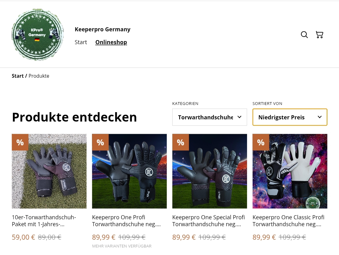 Für KeeperproGermany haben wir einen modernen, verkaufsoptimierten Onlineshop für Profi-Torwarthandschuhe und Torwartausrüstung entwickelt.
